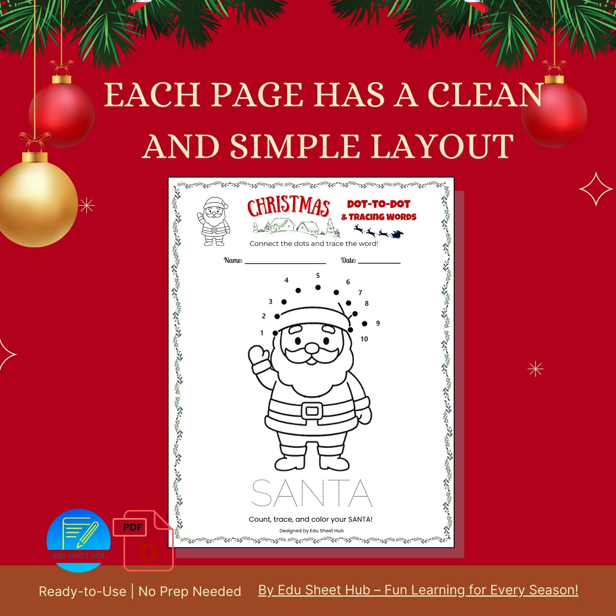 Bring festive learning into your classroom with this Christmas Dot-to-Dot and Tracing Words Worksheet Pack — a high-engagement, no-prep resource perfect for Preschool, Pre-K, Kindergarten, and 1st Grade.
