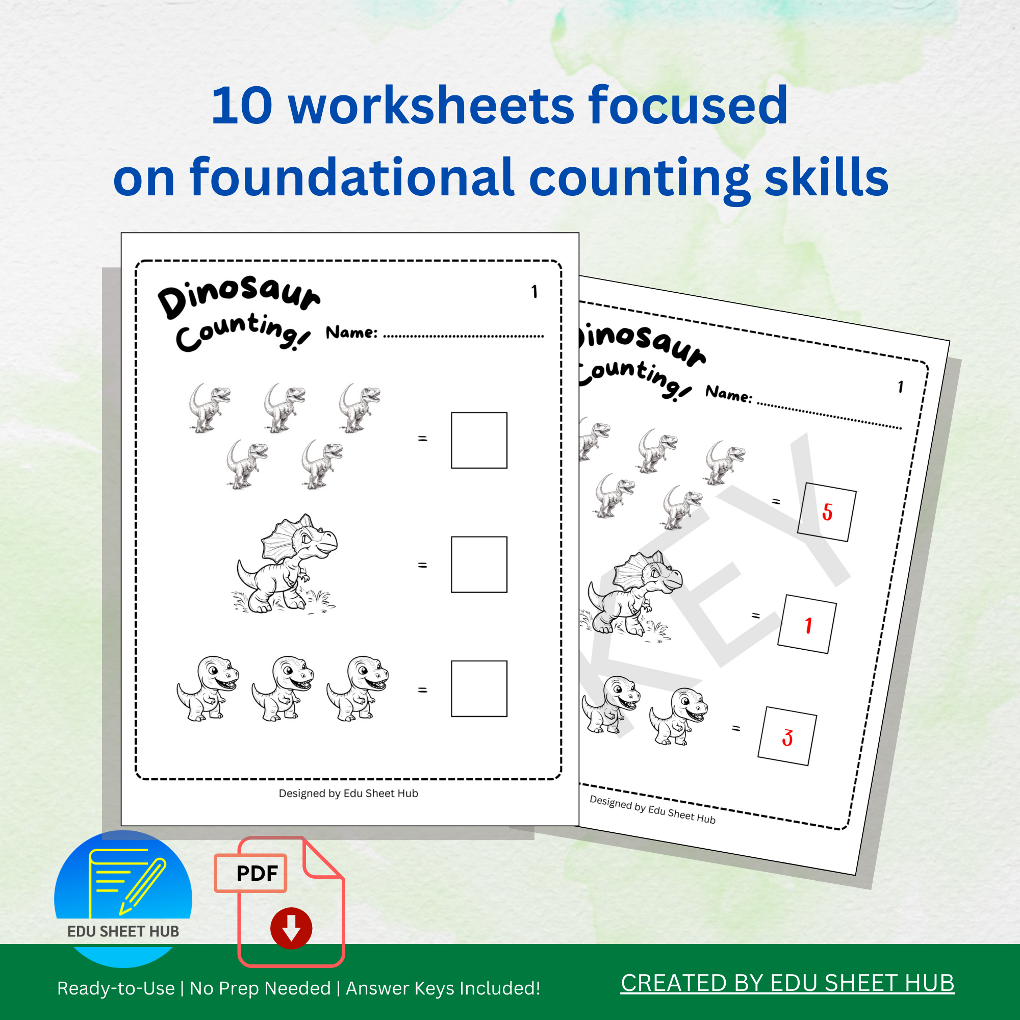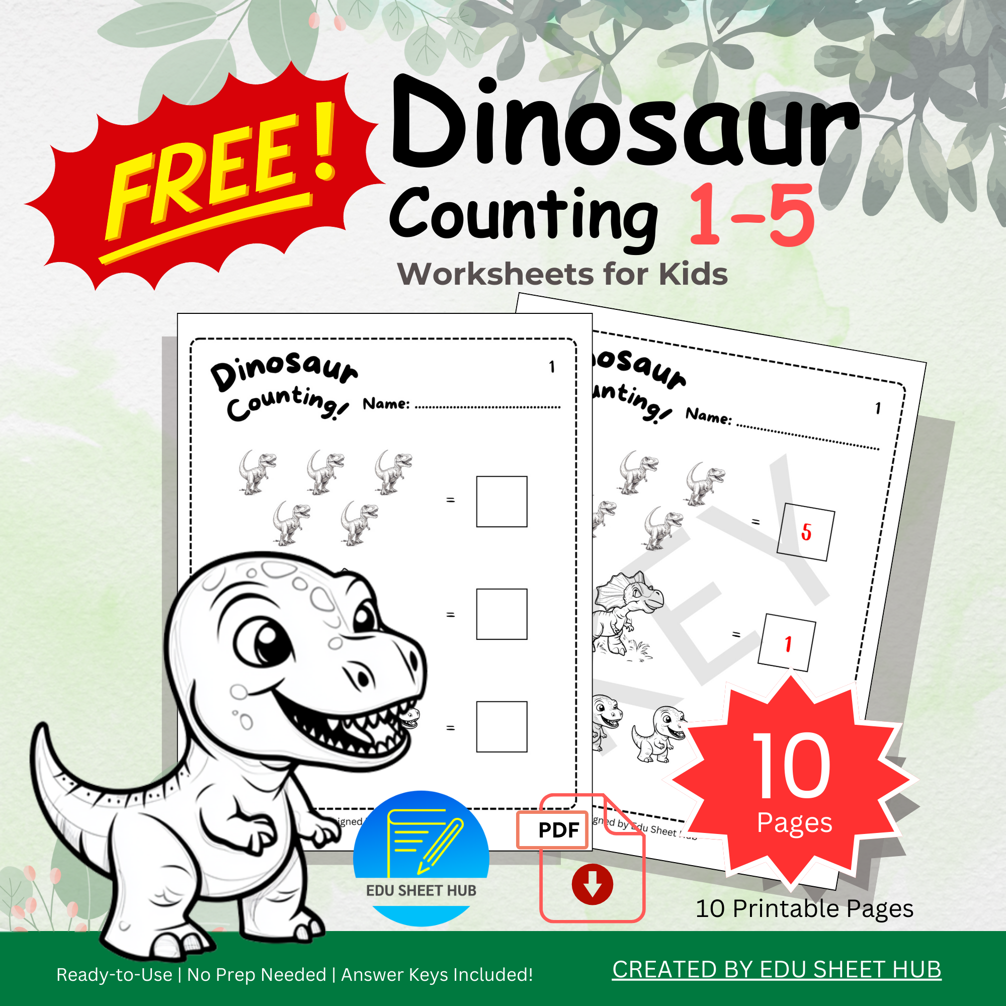 Make counting fun with these Dinosaur Counting Worksheets! πŸ¦– Perfect for preschool and kindergarten students, this 10-page activity pack helps kids practice counting numbers 1 to 5 with cute dinosaur illustrations. Each worksheet includes an answer key, making it easy for teachers and parents to use.