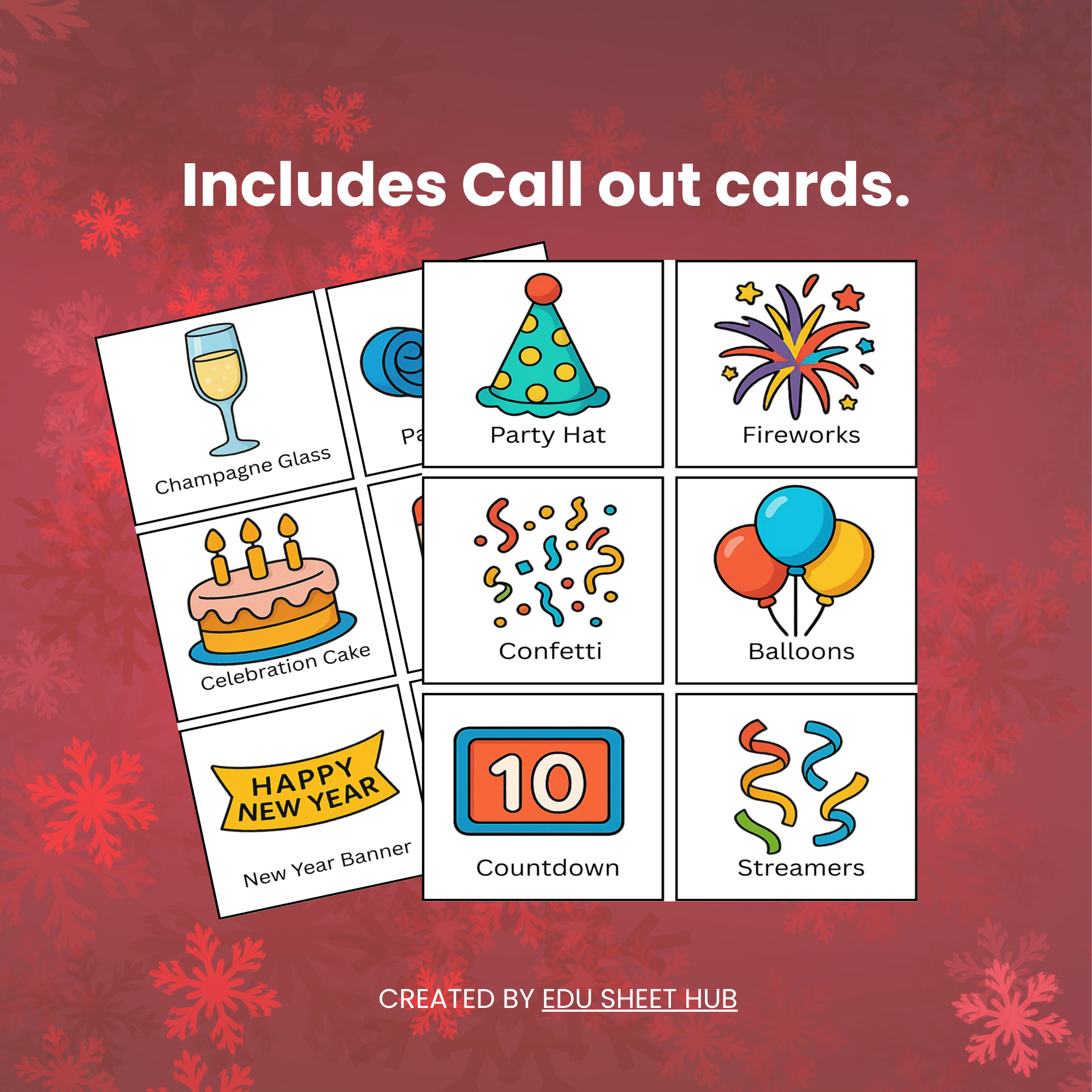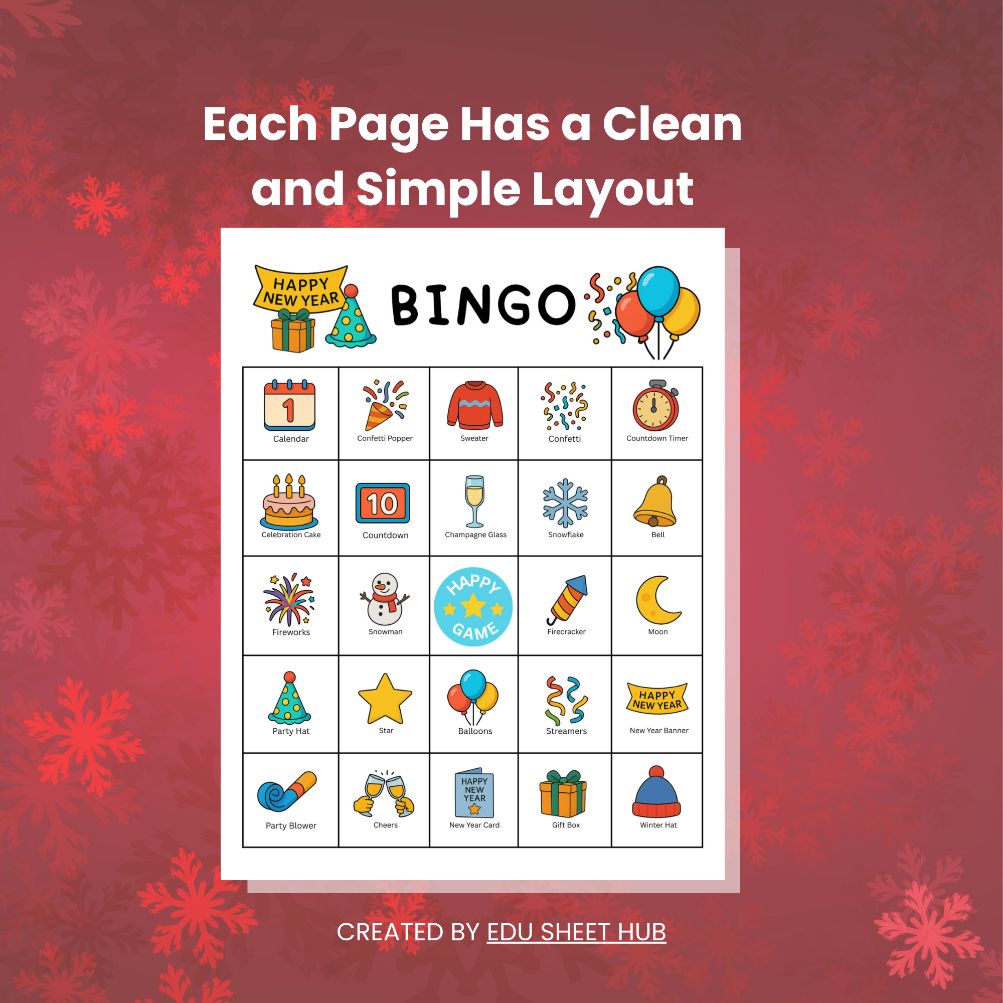 Make vocabulary building exciting with this Happy New Year Bingo Game designed especially for PreK to Grade 2 students. Perfect for classroom parties, ESL activities, small group learning, or family game time!
