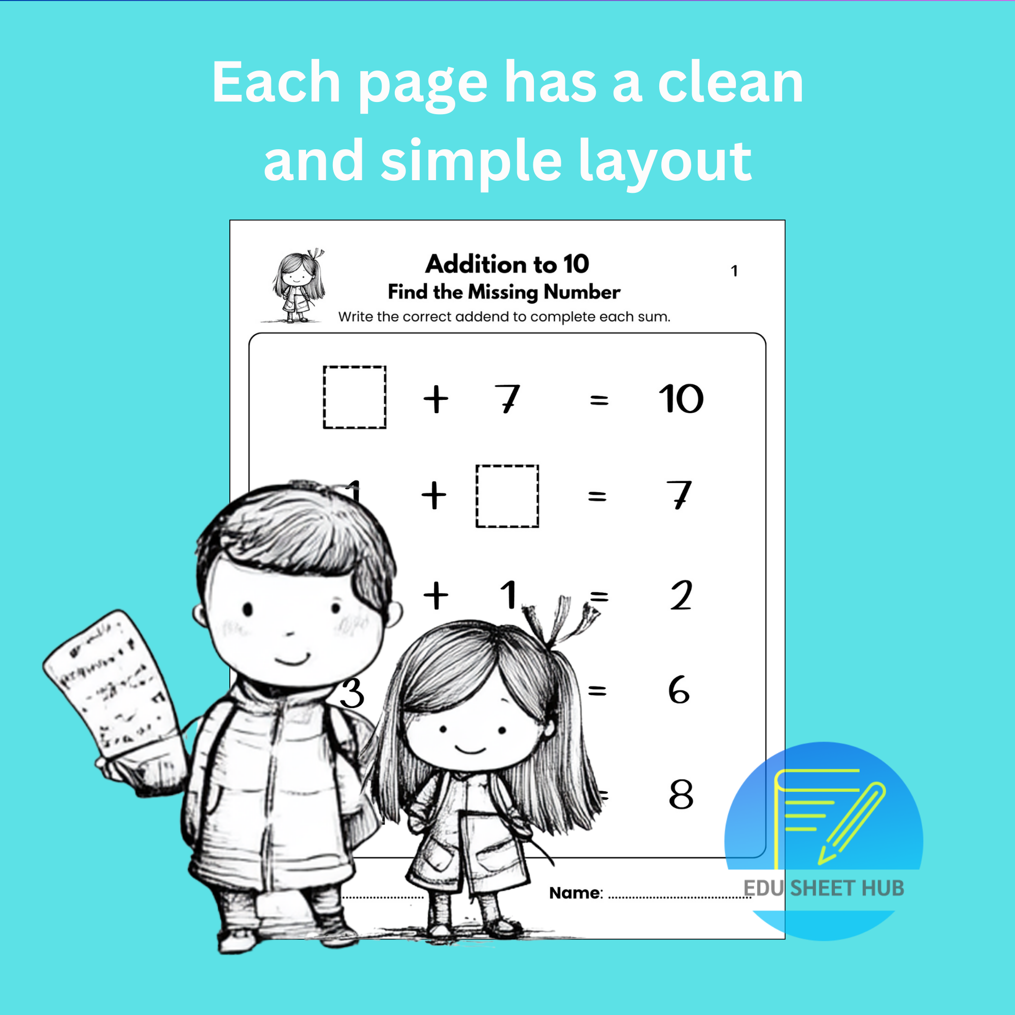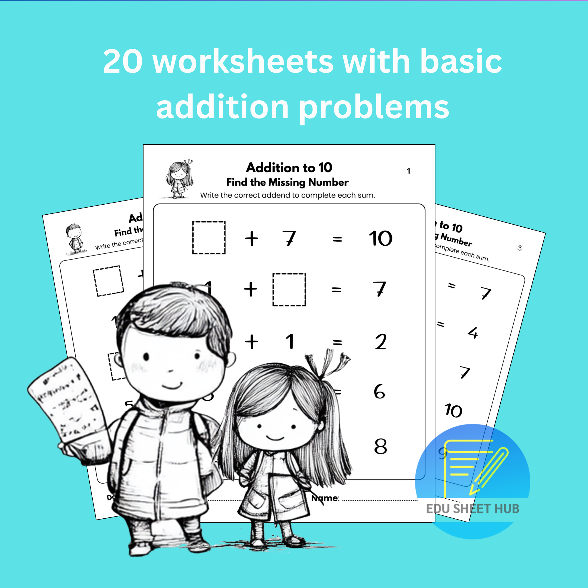 Help young learners master basic addition with this set of 20 fun and engaging worksheets focused on finding the missing addend to make 10. Designed for Kindergarten and 1st Grade, these no-prep printables are perfect for building number sense and boosting confidence in math skills.