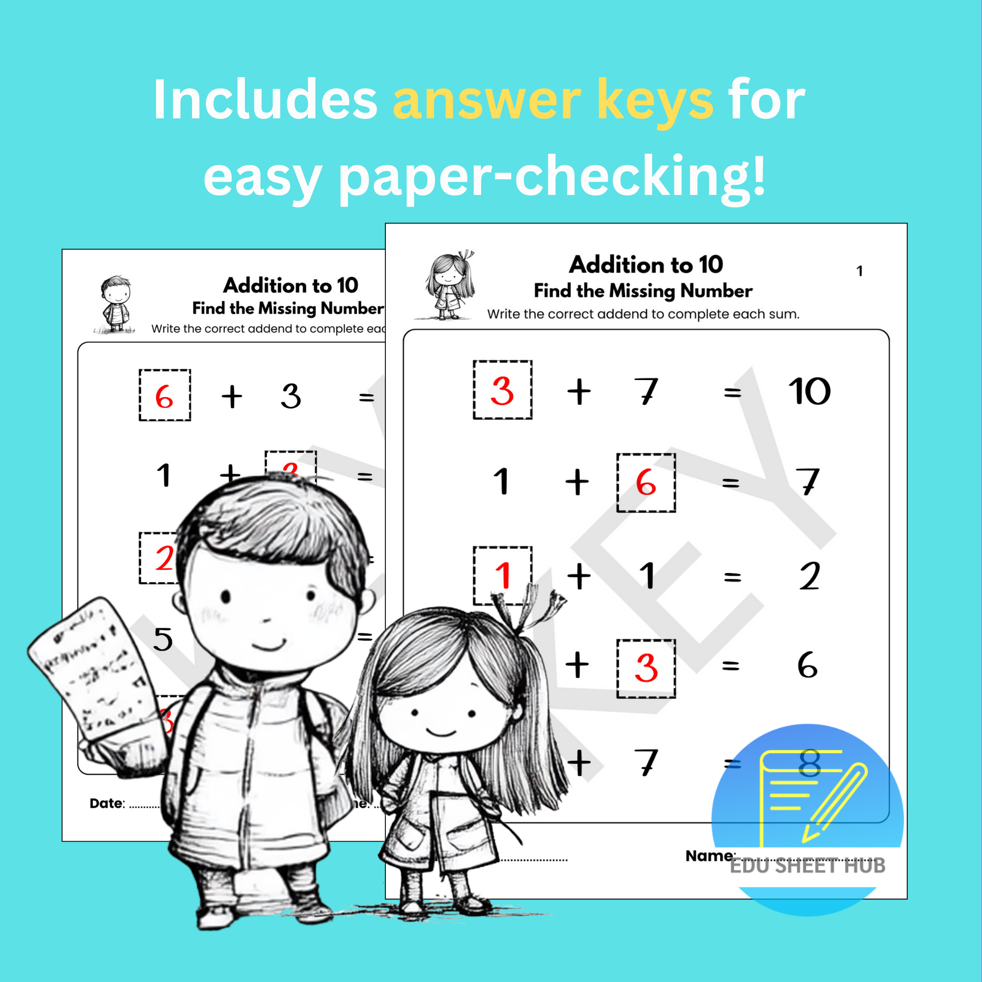 Missing Addend Worksheets to 10 – 20 Pages with Answer Keys