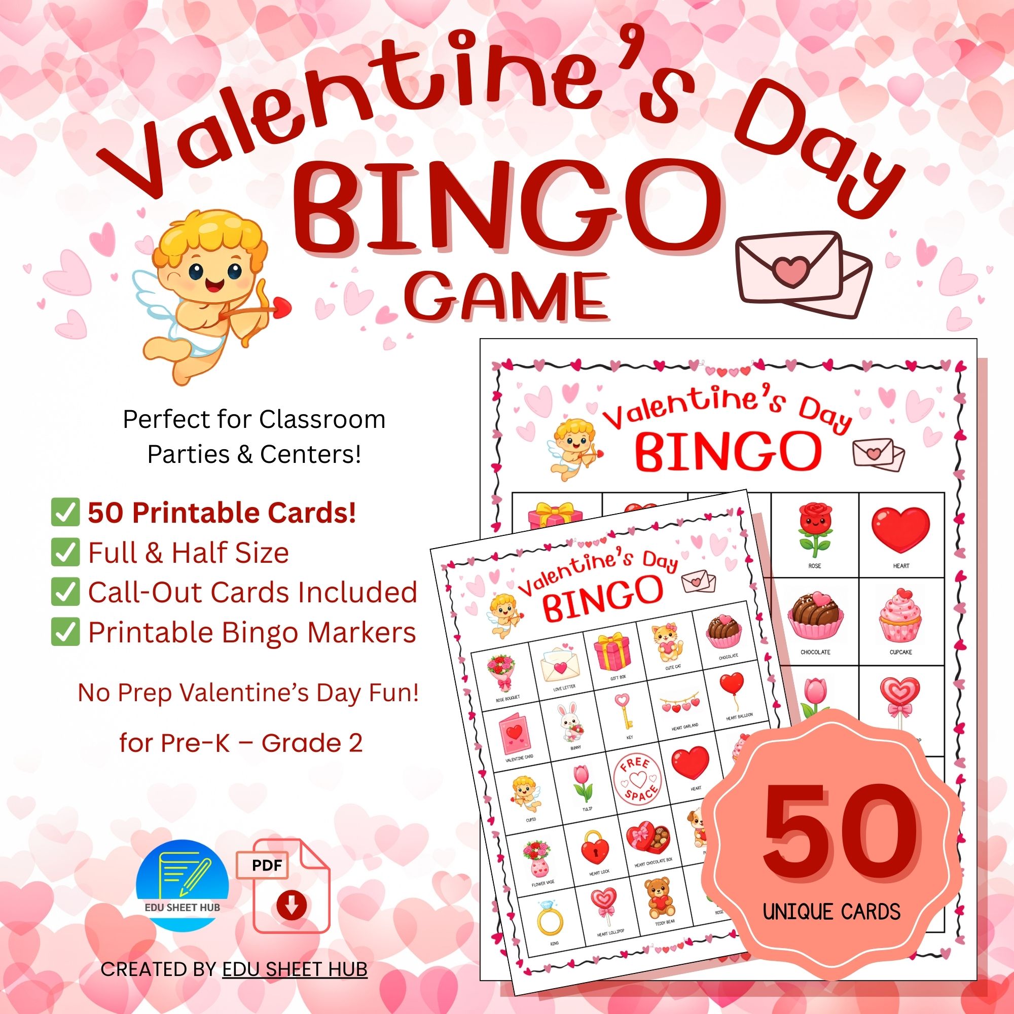 ✔ 50 Unique Full-Size Bingo Cards (5×5 Grid)